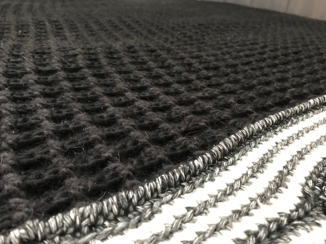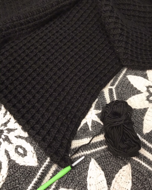 My waffle Afghan grew extra slowly. As the weather began to change my rheumatoid arthritis grew worse, to the point crocheting was/is agony. I could only crochet a row a day due to the pain made it impossible.🤒