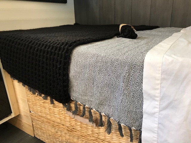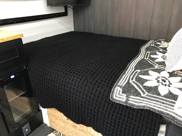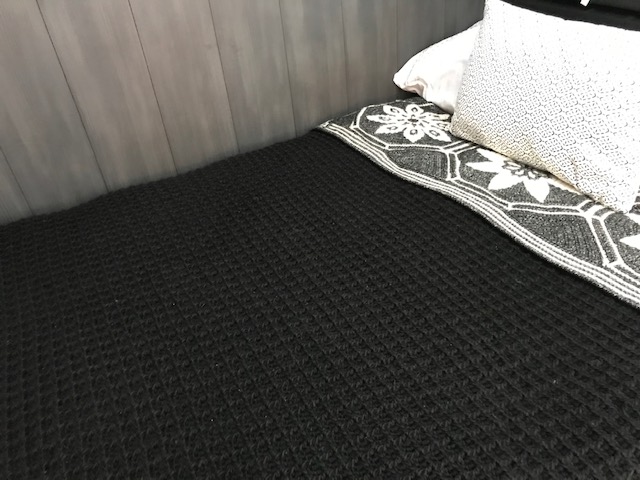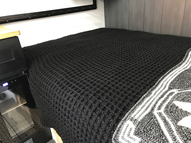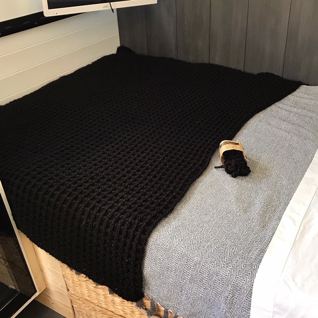 It seems forever since I shared anything crochet with you but I can happily say, I actually finished something and I’m in love. You may remember last year I made a waffle stitch blanket for our utility room/boot room. You can read all about it here. I love the waffle stitch, it looks grand and the warmth is incredible. So when we decided to go the blanket route instead of a duvet in our camper Phillippe, I knew it would be the perfect pattern.