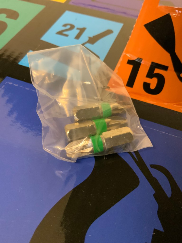 - 9x 25mm PZ TYPE insert bits: No.0, No.1 (x2) No.2 (x4) and No3 (x2)