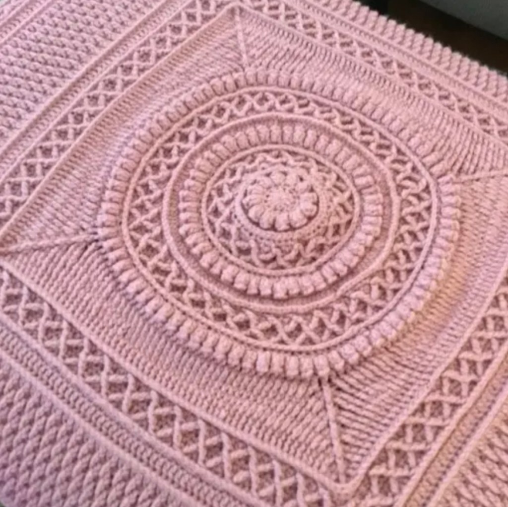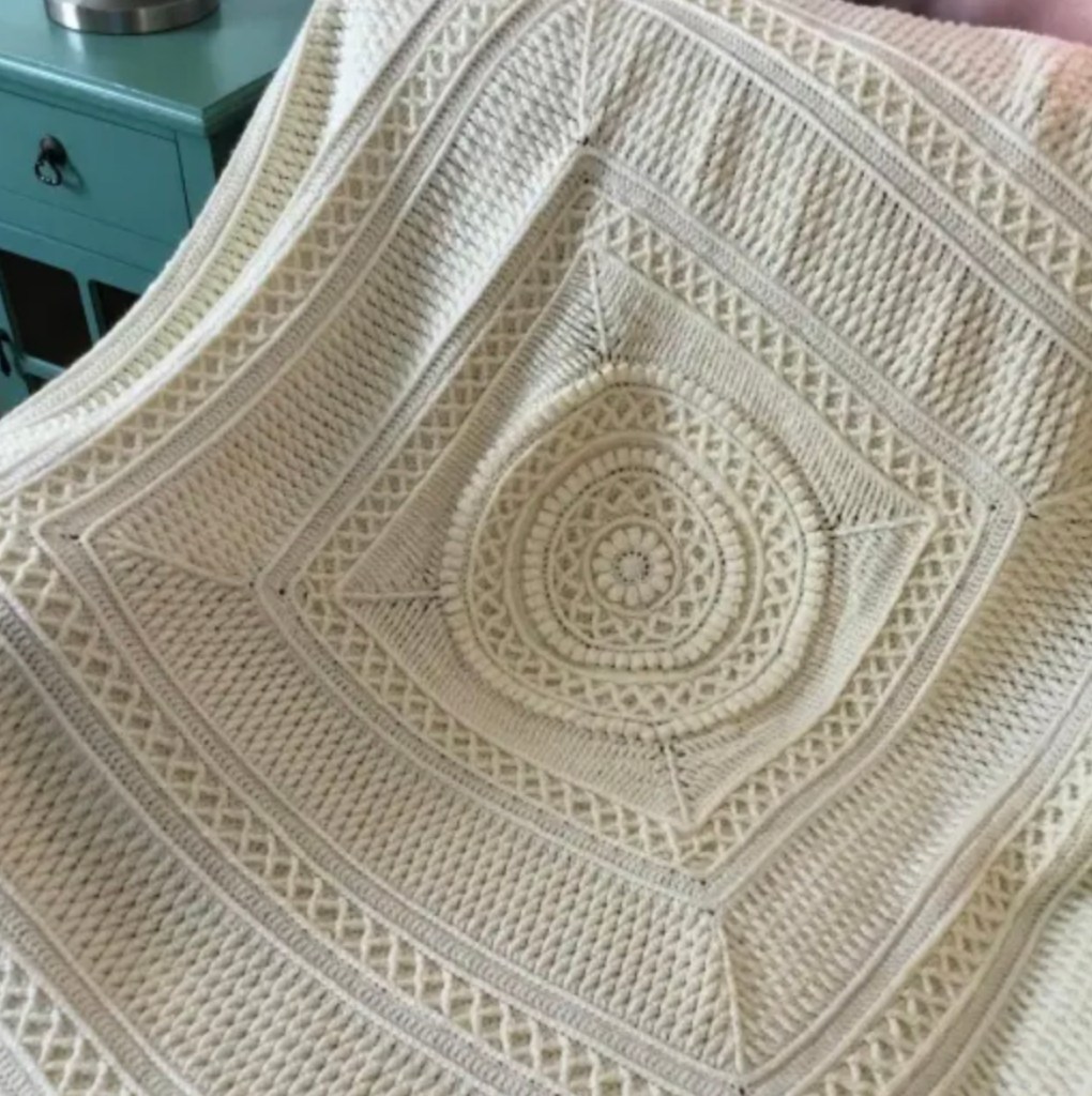 Her new pattern “A Warm Embrace” is a square blanket made in the round and made up of series of sections using some of her favourite stitch combinations.