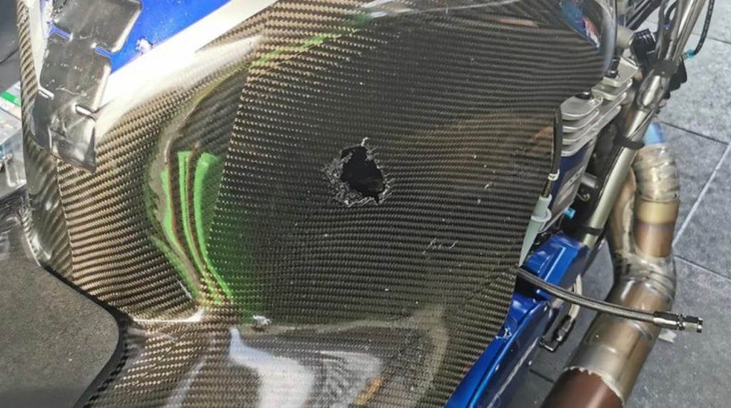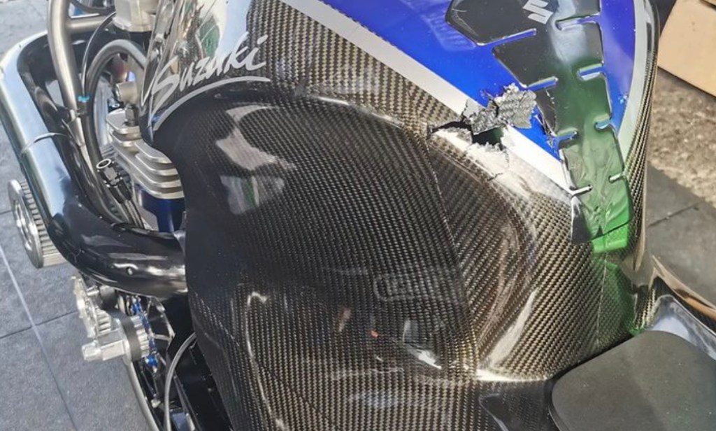 Stuart ran a bye but broke at about 100ft out, resulting in a broken clutch basket gear, which exploded through the engine casing and the carbon body, hitting Stuart in the chest. Thank goodness he was fine, the bike not so and the end of the meet for him unfortunately.