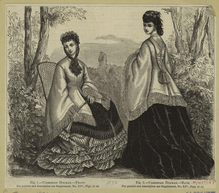 A Mantle (from old French mantel, from mantellum, the Latin term for a cloak) is a type of loose garment usually worn over indoor clothing to serve the same purpose as an overcoat. Technically, the term describes a long, loose cape-like cloak worn from the 12th to the 16th century by both sexes, although by the 19th century, it was used to describe any loose-fitting, shaped outer garment similar to a cape. For example, the dolman, a 19th-century cape-like woman’s garment with partial sleeves is often described as a mantle.