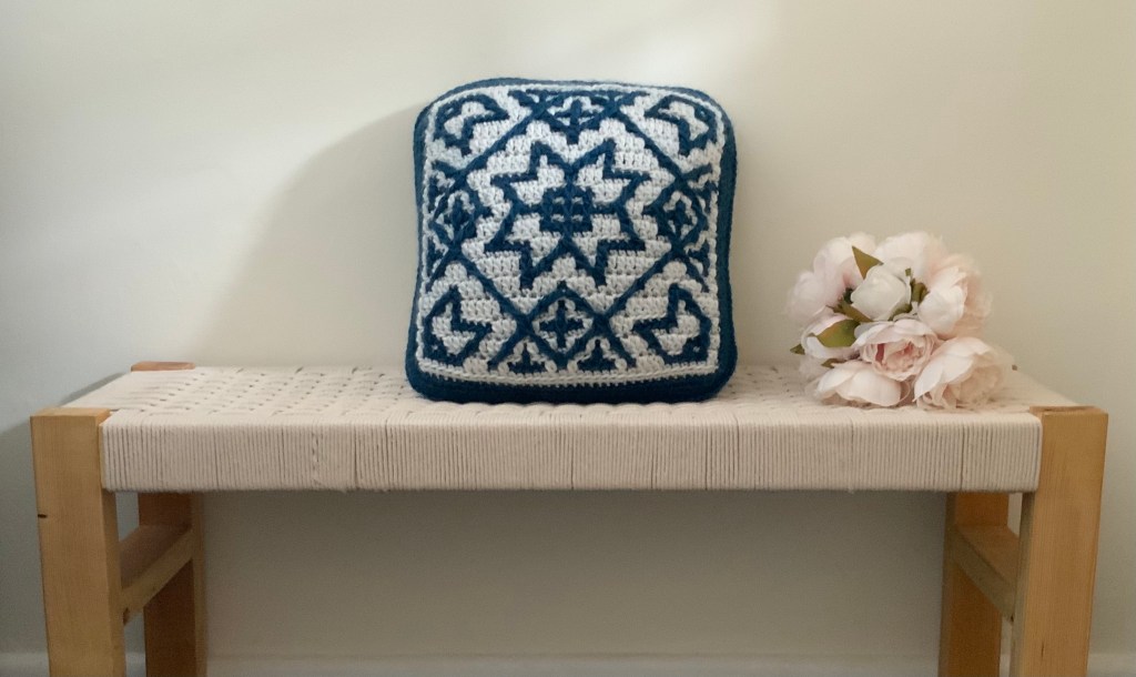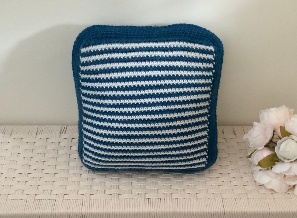 I then continued joining and finished with an invisible join, weaved in my ends and my cushion was finished.