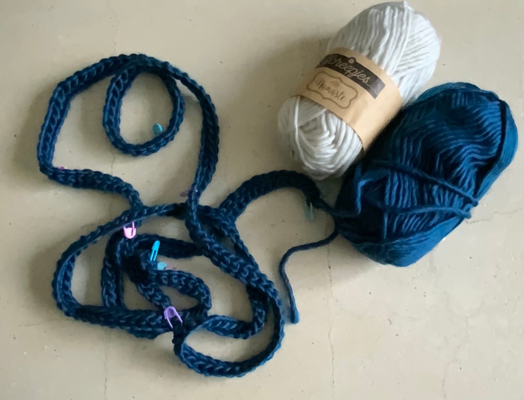 I then started a back for it. This time I used Scheepjes Namaste, Staff (626) as colour A and Scheepjes Namaste, Happy Baby (621) as colour B.