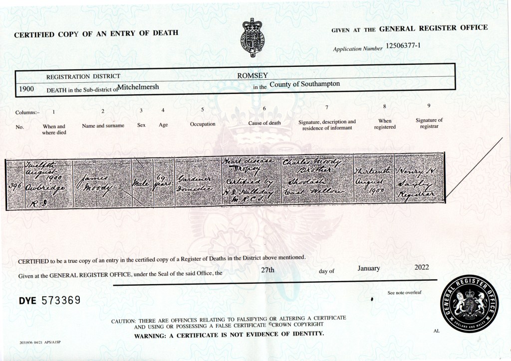 Sadly, James passes away on 12/08/1900 aged 69, from Heart disease and dropsy.