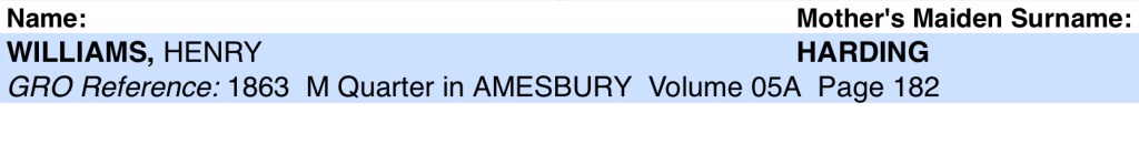 Two short year later, another son was born, whom they called Henry. Henry was born in the March quarter of 1863, in the Amesbury district of Wiltshire.