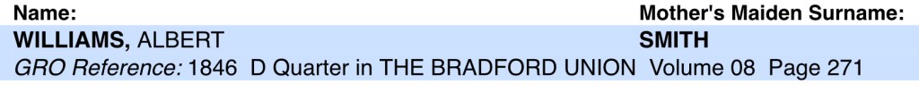 Between October and December 1847, another son was born, whom they called Albert. He was born in the Bradford Union district, of Wiltshire.