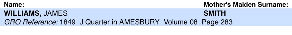Between April and June 1849, their Son, James Williams was born in the Amesbury district of Wiltshire.