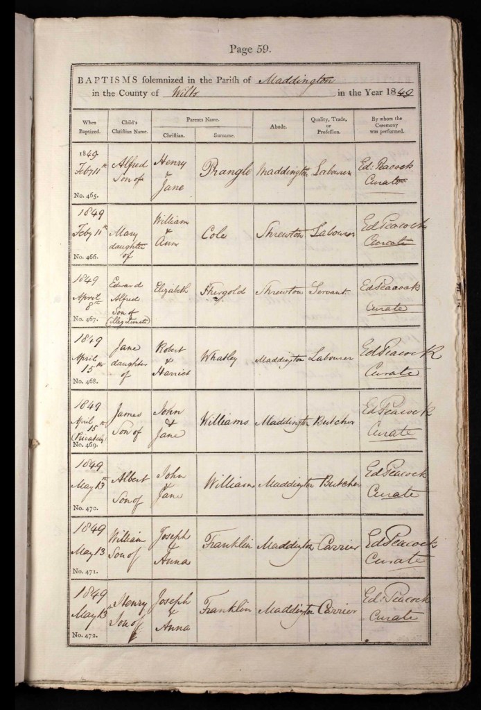 On Sunday the 15th of April 1849, at St Mary’s Church, Maddington, Wiltshire, John and Jane, baptised, Albert and James.