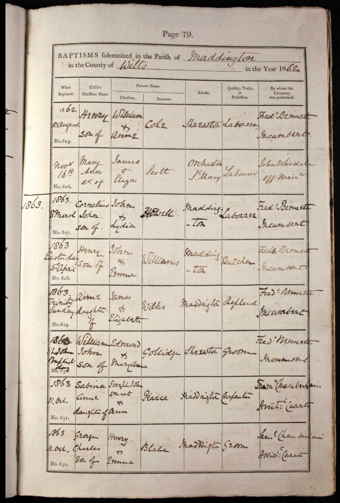 Henry was baptised at St Mary’s Church, Maddington, Wiltshire, on the 5th of April 1863.
