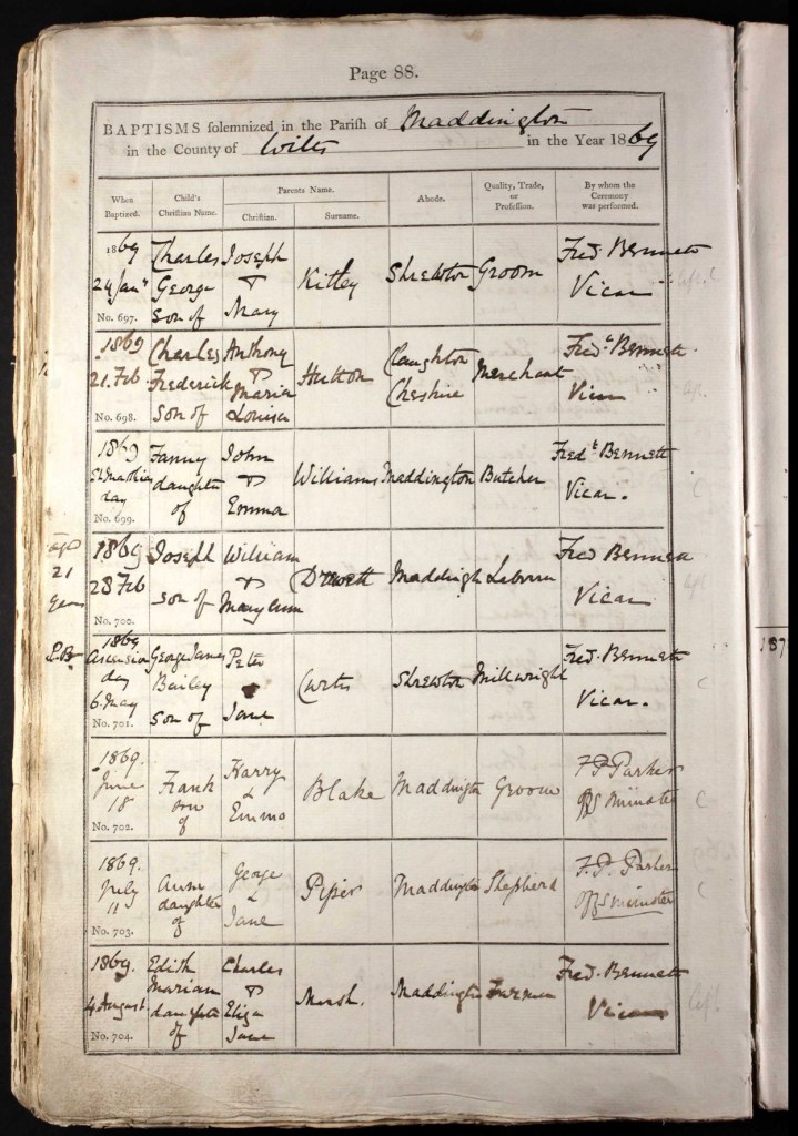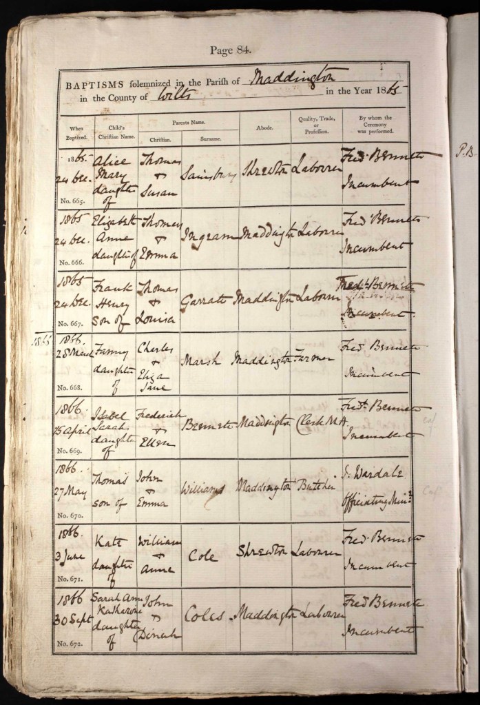 John and Emma, baptised Fanny on the 21st September 1869, at St Mary’s Church, Maddington, Wiltshire.