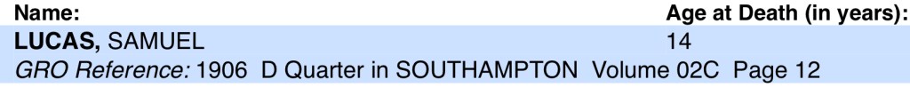 Samuel was laid to rest with his father Samuel, at Southampton Old Cemetery, Hill Lane, Southampton, Hampshire, England in Row N, Block 150, Number 201, on the 22nd November 1906.