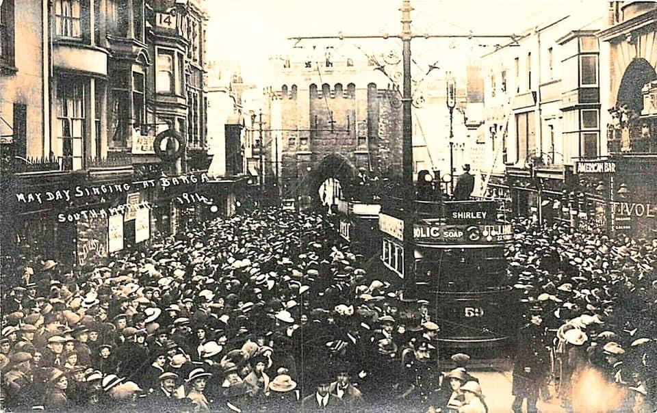 Southampton held their long held tradition of singing in the dawn for the Mayday celebrations. It was started up around that period by a clergyman from St.Mary’s. The King Edward’s School choir sang in the dawn from the roof of the Bargate.