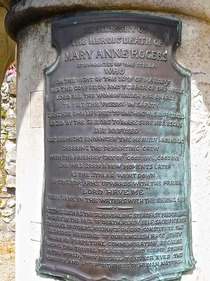 The Norman-style drinking fountain was erected in Southampton, in July 1901 in memory of Mary Rogers, stewardess of the Stella. The 46-year old mother of two was one of a crew of 13 who lost their lives at sea. She gave up her life-belt to save another and stayed with her ship, the Stella, which collided with rocks and sank in the Channel in March 1899.