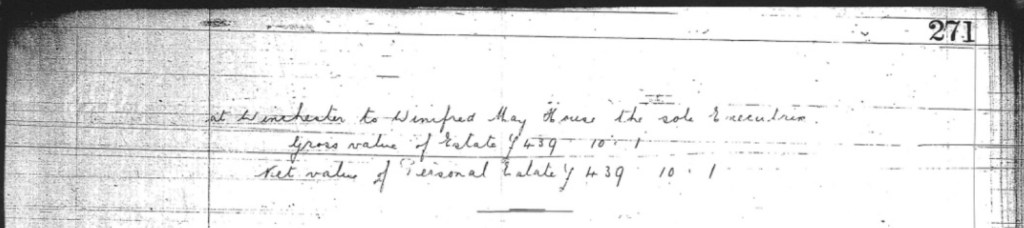 Alice’s probate was granted in Winchester on the 12th May 1915, it reads –