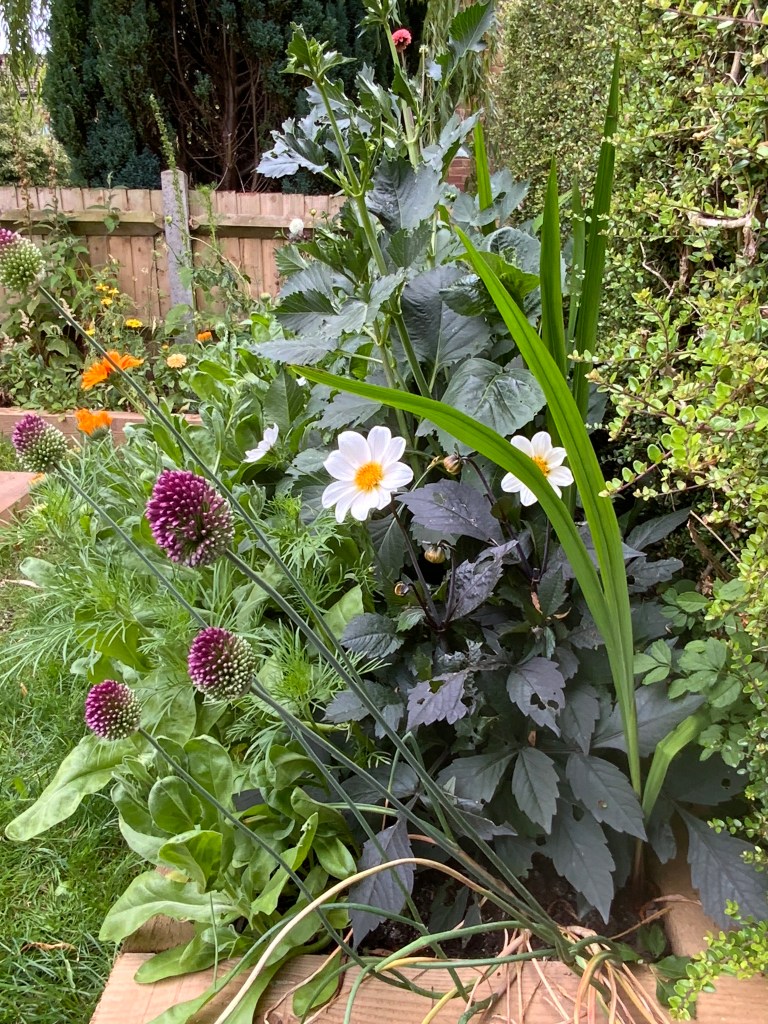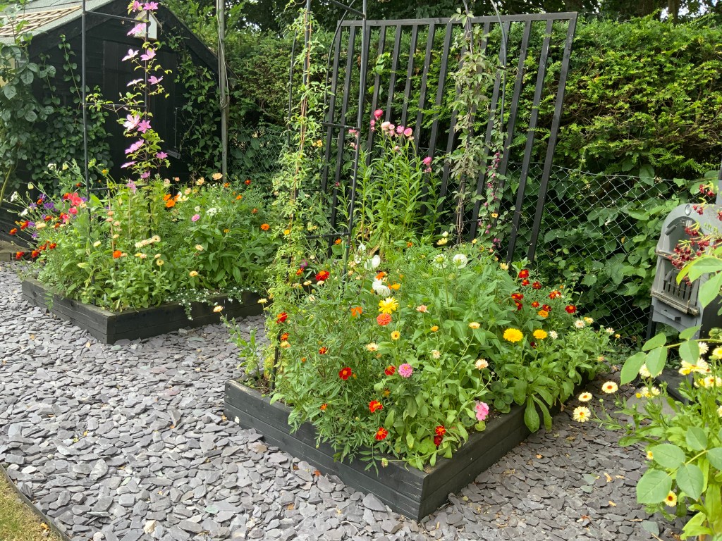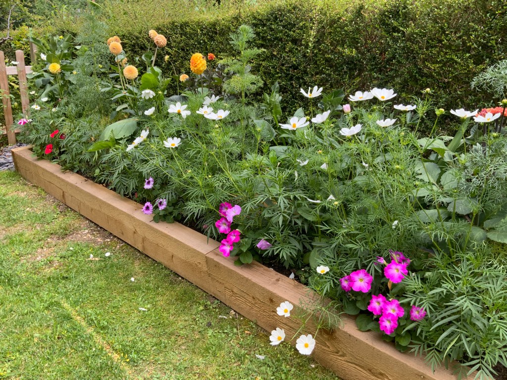 Last year we exchanged veg for flowers, as we have done again this year. Unfortunately the trees that killed the grass, drains all the goodness and water from the ground, as well as shade them much more than we would like.