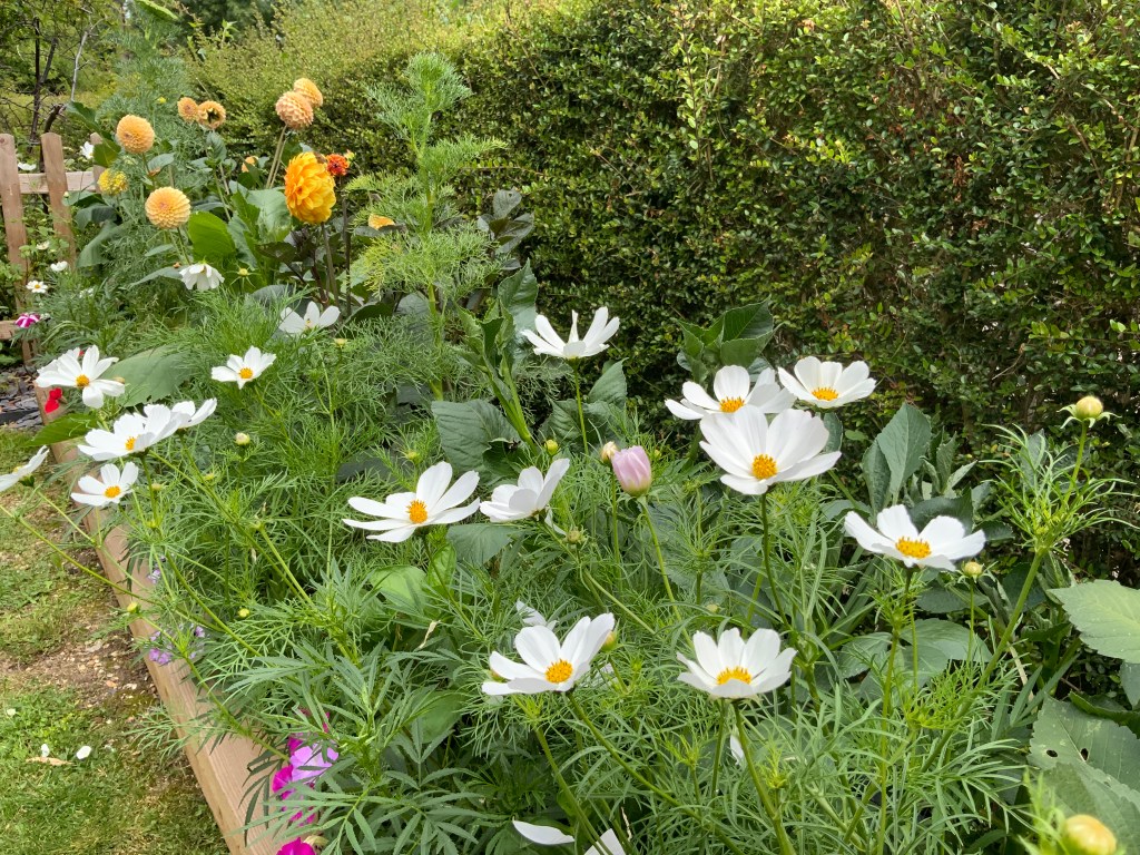 As I’ve mentioned before over the last few months Mark and I, have slowly been sorting out the front garden. Mark has made railway sleepers borders which are now full of dahlias, cosmos and calendulas, which are just starting to put on a show.