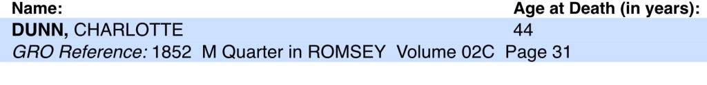 Unfortunately for Christian, the Luke and Dunn family, Christians sister, Charlotte Dunn nee Luke, died on Friday the 2nd of January 1852, at Newton Lane, Romsey, Hampshire, England, when she was 44 years old.