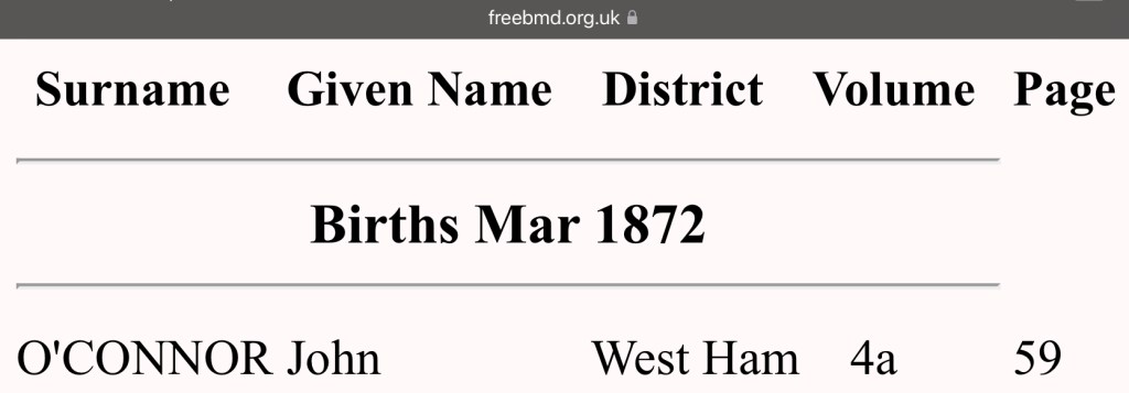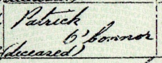 As you can see this John O’Connors father, was called, Patrick, which fits in a way, as we know he was named, Patrick, on one of Annie Dorothy O’Connors, marriage certificates.