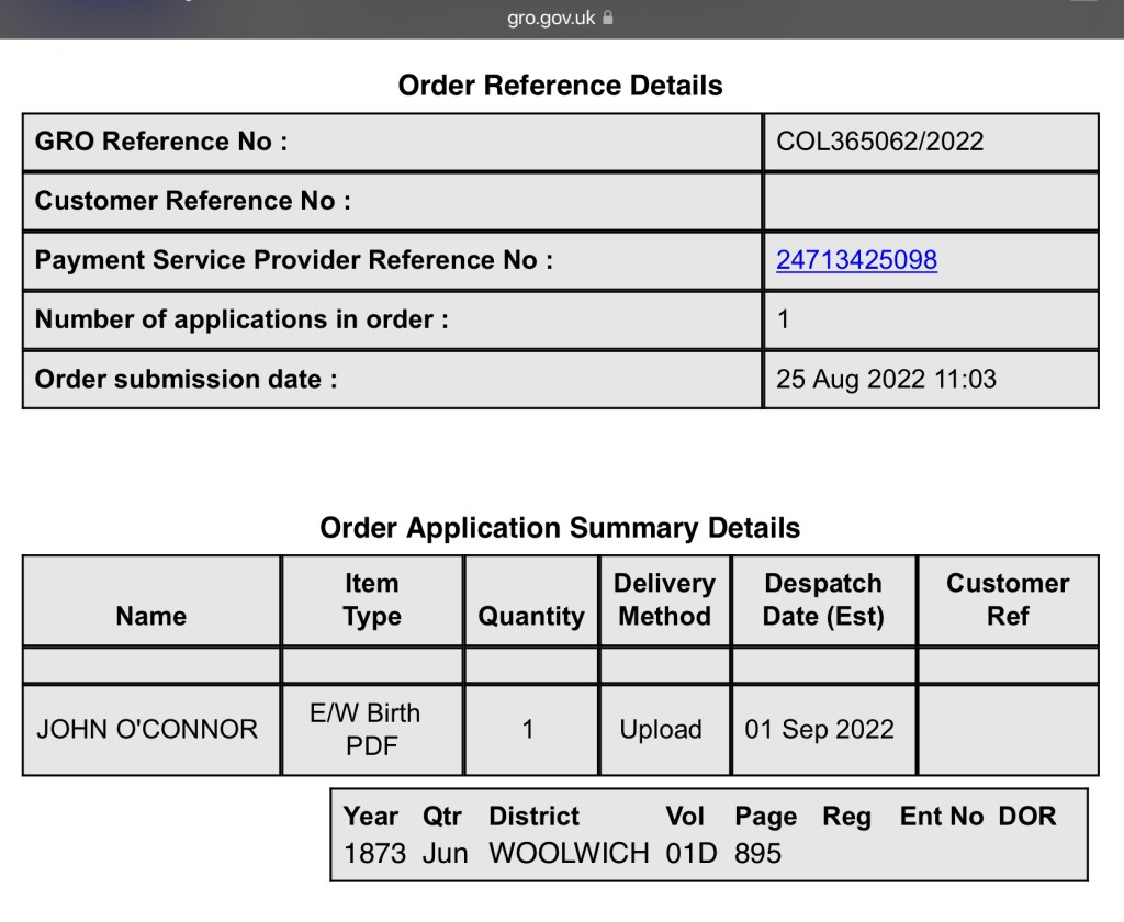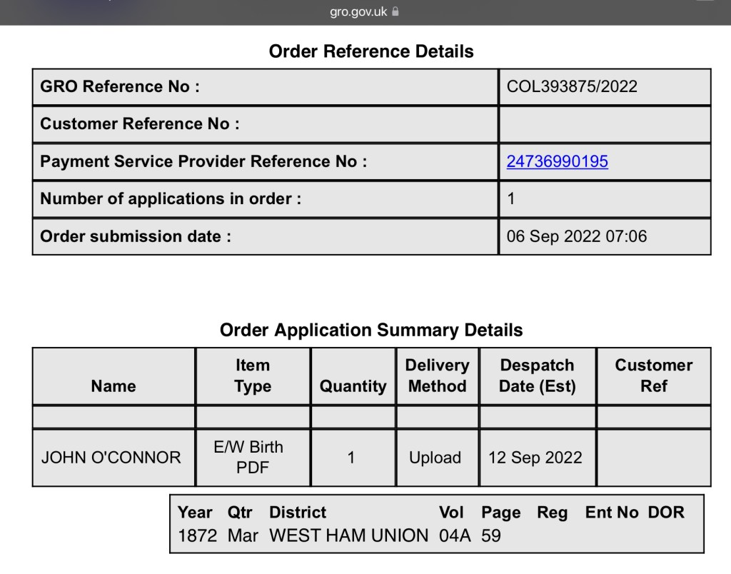 I ordered the corresponding birth certificate on the 6th of September 2022.