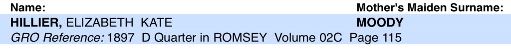 His Step-Daughter Elizabeth Hillier, was present and registered his death on the same day as George’s death Thursday the 26th of August, 1899 in Romsey.