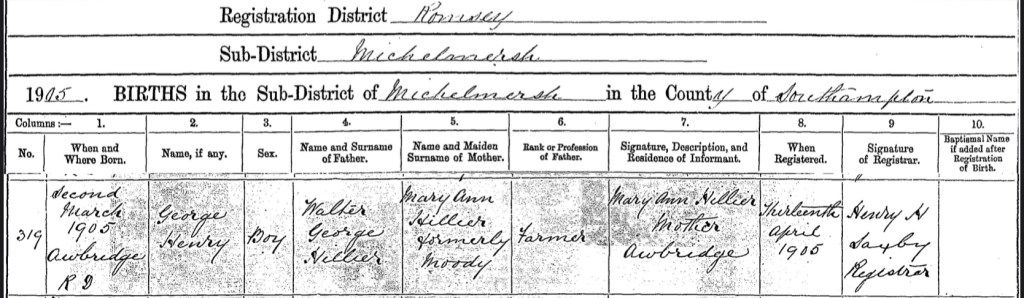 Walter and Mary Ann welcomed another son into their family and home, on Thursday, the 2nd of March 1905, at Awbridge Romsey.
