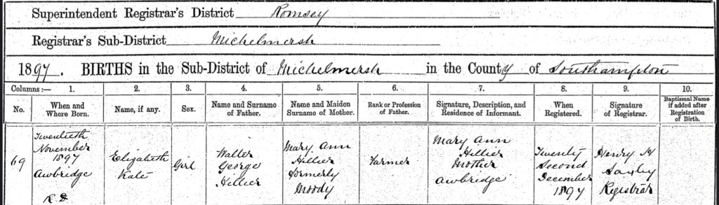 She gave their residence as Awbridge and Walters occupation as a Farmer.