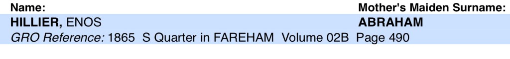And in the September of 1867, my hubbies and my sister in-laws Sarah and Rache’s, 3rd Great Grandfather, Mr Walter Hillier, an Agricultural Labourer, and his wife Mrs Caroline Hillier nee Abraham and their son, Enos Hillier, who was born on Saturday the 13th of August 1865, at Tapnage, Titchfield, Hampshire, England, were living in the Village of Titchfield, Hampshire, England.