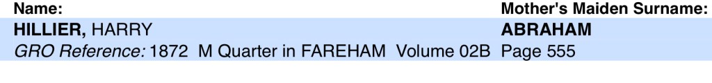 Caroline once again traveled to Fareham to registered Harry’s birth, on Saturday, the 9th of March, 1872.