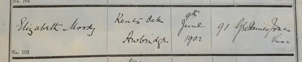 On the 4th June 1902, Walter George and family, went into morning, when Walters Grandmother, Elizabeth Moody nee Hillier nee Grist, died, at Awbridge, Romsey, Hampshire, England, at the grand age of 91 years.
