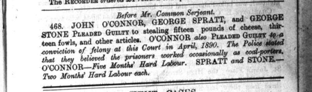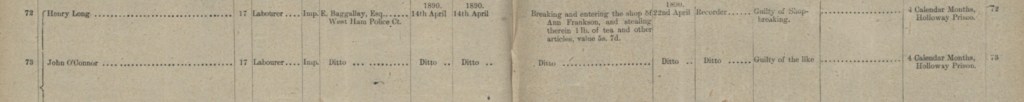 And on the 21st April 1890, John was found guilty at The Old Bailey, Londons central clinal court, for stealing tea, ginger beer, and other articles and was sentenced to Four Months’ Hard Labour at HM Prison Holloway.