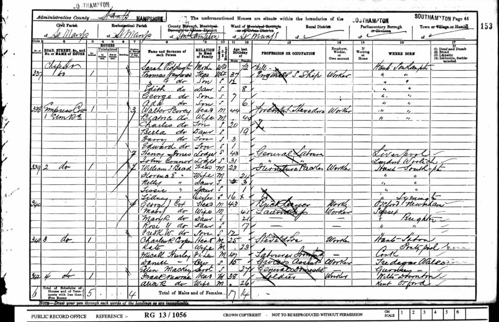 Their residence was still Number 11, Cross House Terrace, Southampton.
