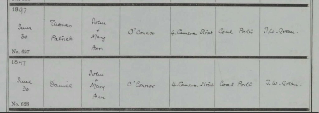 Ann O’Connor registered his birth on Wednesday, the 3rd of April 1878.