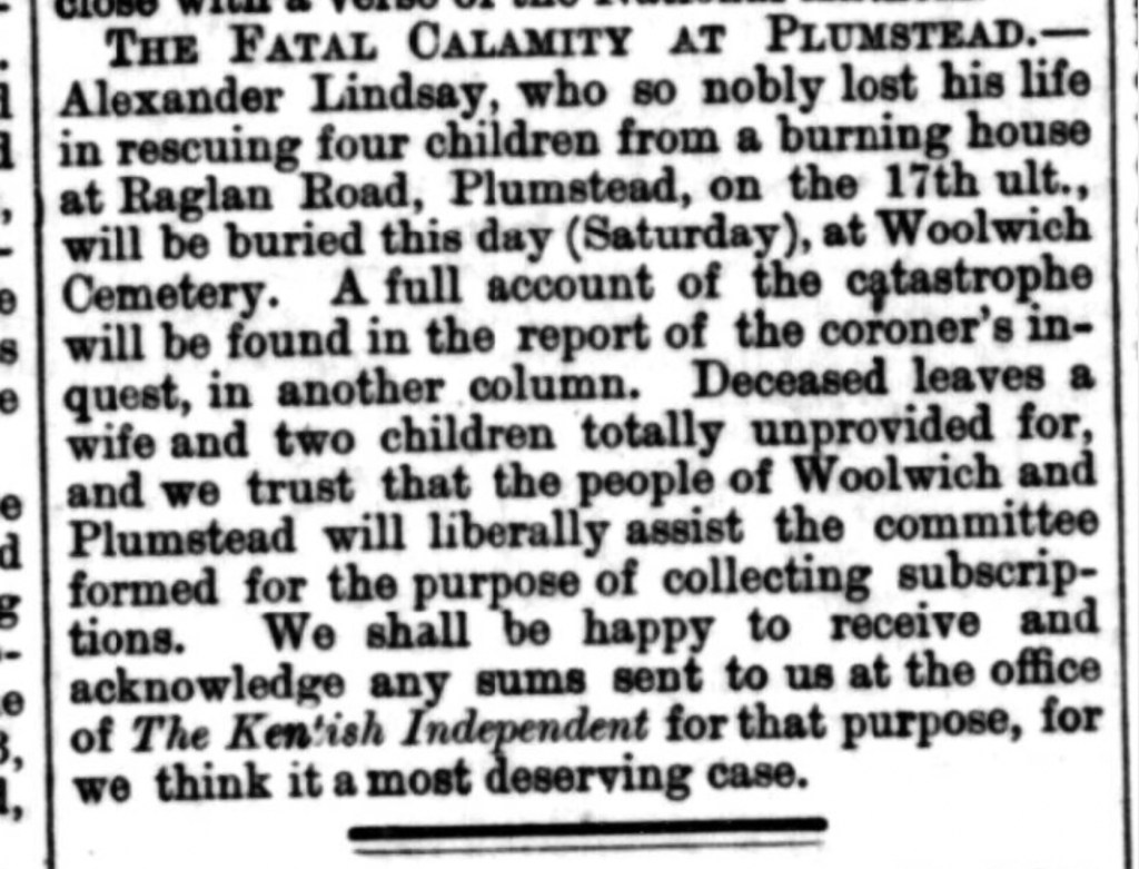 THE FATAL CALAMITY AT PLUMSTEAD. –