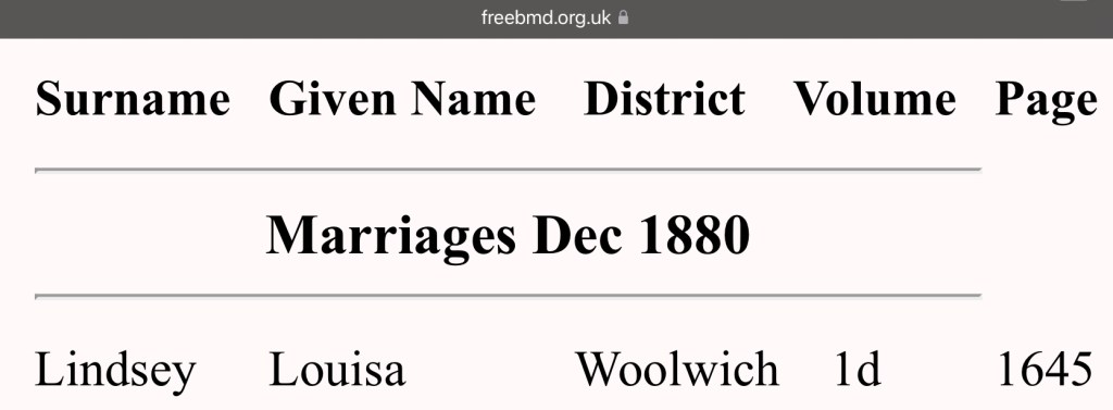Thankfully for Mary, there was a glimmer of hope and happiness on the horizon as, Mary and Alexanders daughter, Lucy Lindsay aka Louisa, married Alfred Emmanuel Everson in Woolwich, Kent, on Tuesday the 9th of November 1880.