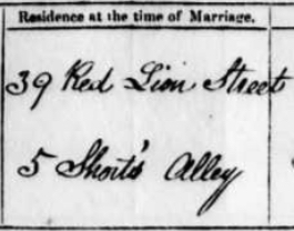 I believe Mary came over from Ireland somewhen between 1851 and 1854 and went to stay with her Brother, Thomas Connor, and his family, at 5 Shorts Alley, Woolwich. Thomas was residing their in 1851 (see census) and Mary was residing their in 1854, when she got married.