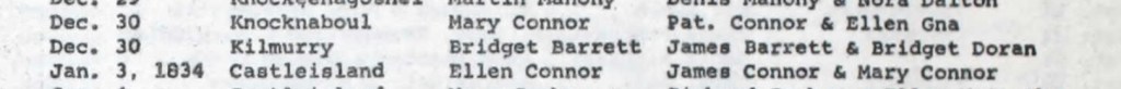 And that Mary was baptised on the Monday the 30th of December, 1833, at Castle Island, Co Kerry, Ireland and was from Knocknaboul, Co Kerry, Ireland.