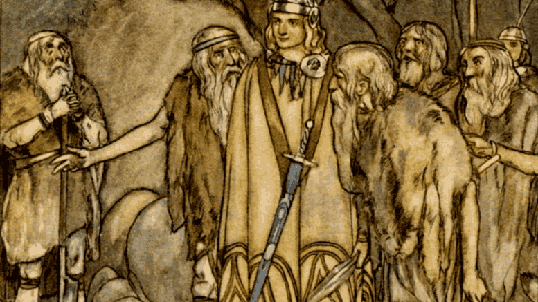 According to legend, Cú Chulainn was the son of the god Lugh and a mortal woman named Deichtine. He was raised by his foster father, the blacksmith Culann, who gave him his famous name after he killed Culann’s fierce guard dog in self-defense. In order to make amends, Cú Chulainn offered to guard Culann’s property himself until a new guard dog could be trained.