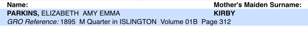Susan registered Elizabeth’s birth on Sunday the 19th of February 1895, in Islington.