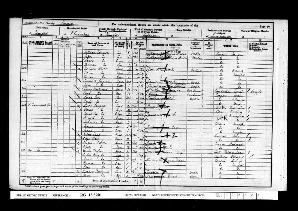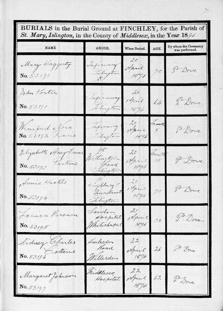 She gave her husband George’s occupation as a General Labourer and their abode as Number 24, Queensland Road, Islington.