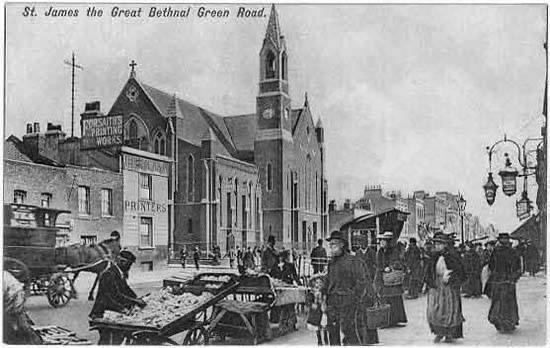 A district was assigned in 1844. Incumbent Edward Coke offered marriages for the fee of 7 pence, causing rowdy scenes as young couples got married in batches. He also raised many funds, founded a dispensary, a visiting society and a Sunday School. In 1951 the parish was united with Saint Jude (P72/JUD), and in 1969 with Saint Matthew (P72/MTW) and Saint Peter (P72/PET) in a team ministry. In 1984 Saint James the Great with Saint Jude united with Saint Matthew. The church was converted for residential use. From: ‘Bethnal Green: List of Churches’, A History of the County of Middlesex: Volume 11: Stepney, Bethnal Green (1998), pp. 217-226. In 1865, the Reverend E F Coke made the church the first in London where poor couples could get married for free. It survived the blitz during the Second World War and more recent redevelopment in the area. The church served from 1844 to 1987, when it closed and was converted into housing.