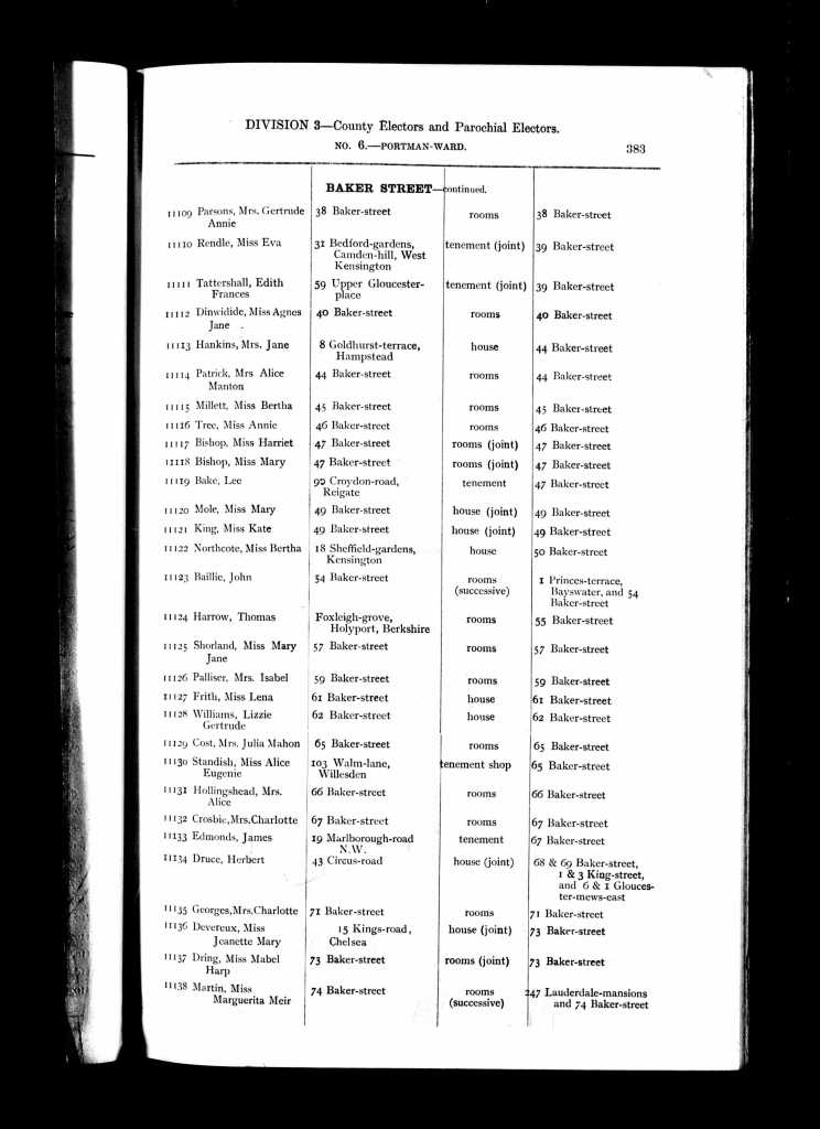 The 1924 London, England, Electoral Registers confirms that, Charlotte was residing at 84b Portsdown Road, Paddington, Westminster, London, England, in 1924. It states that Charlotte was living alone, but from Charlotte’s Last Will and Testament, we know that Charlotte’s companion Eliza Smith was living with her in 1923, even though Eliza hasn’t been named on any previous Electoral Registers.