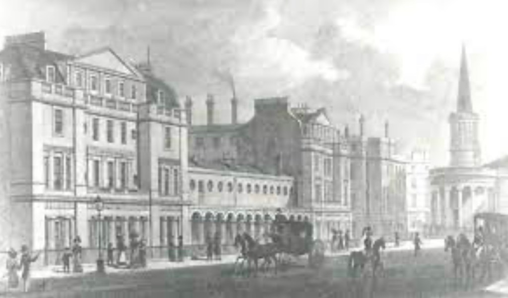 Langham Place is a short street in Westminster, central London, England. Just north of Oxford Circus, it connects Portland Place to the north with Regent Street to the south in London’s West End. It is, or was, the location of many significant public buildings, and gives its name to the Langham Place group, a circle of early women’s rights activists. There are several major buildings on Langham Place, including All Souls Church, Broadcasting House, and the Langham Hotel. Queen’s Hall and St. George’s Hall were also here until their destruction during World War II. The area is associated with the architect John Nash, although all but one of his original buildings have been replaced.