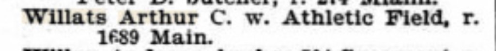 From the U.S City Directories, we know Arthur was residing at, 1689 Main Street, Buffalo, Erie, New York, United States of America, in 1904. The directly entry also shows a W (which either means Westside or Work/occupation) and Athletic Field.