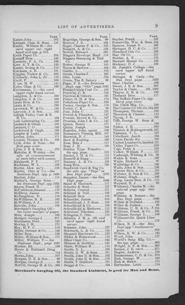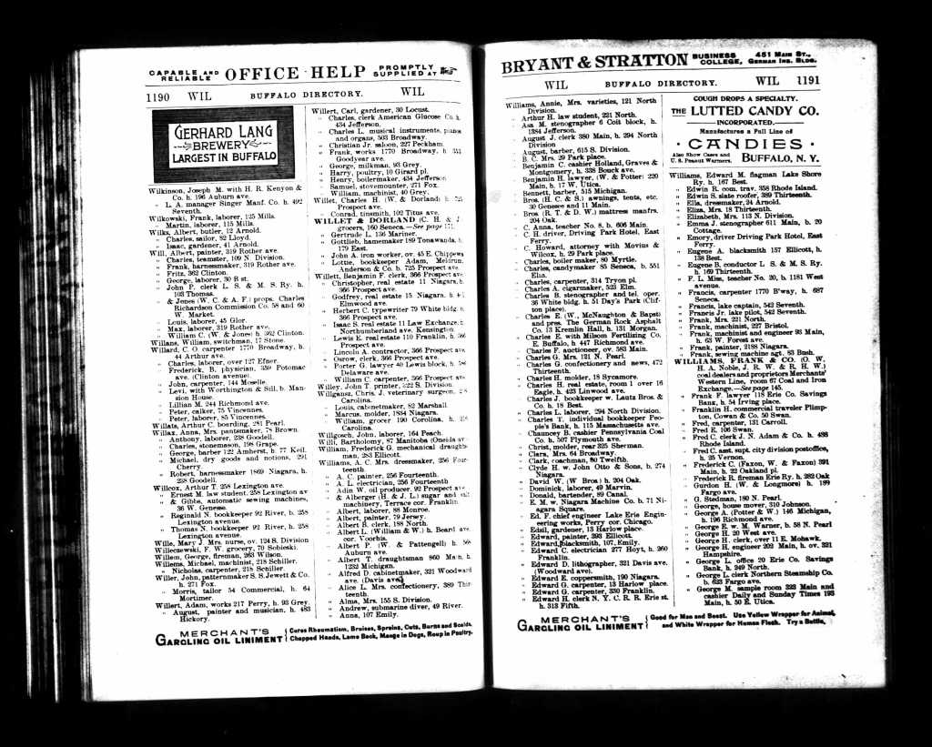 In addition to the alphabetical portion, a city directory may also contain a business directory, street directory, government directory, and listings of town officers, schools, societies, churches, post offices, and other miscellaneous matters of general and local interest. These sections can help you become more familiar with the city or county your ancestor lived in. If your ancestor owned a business, be sure to check the business section for advertisements.