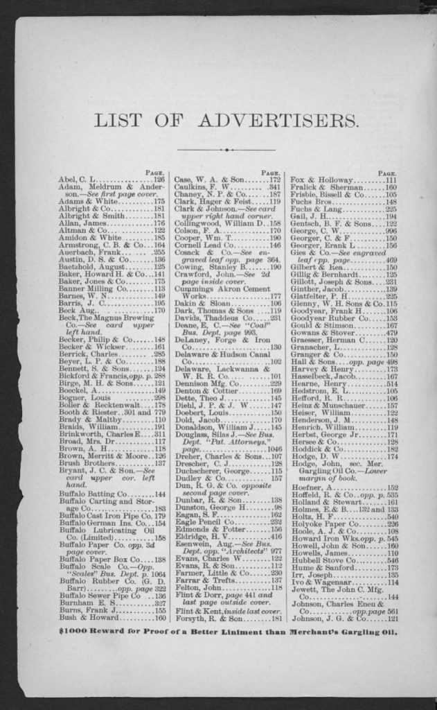 The 1886 Buffalo City Directory was issued on the 1st of January 1886.