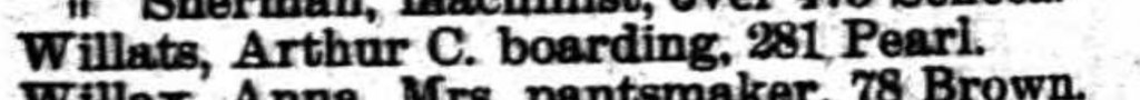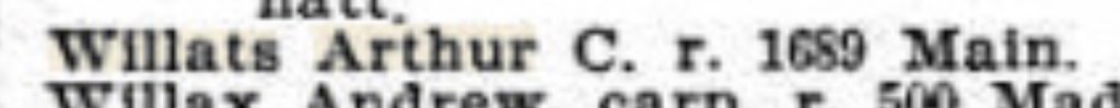 It's from the Buffalo City Directory, we know that Arthur and his wife Josephine was residing at Number 145 Franklin Street, Buffalo, Erie, New York, United States of America and Arthur was working as an Actor. Josephine was named as Mrs Josie Willats. Josie has the word Boarding listed where her occupation should be. I am lead to believe this means Boarding stables.