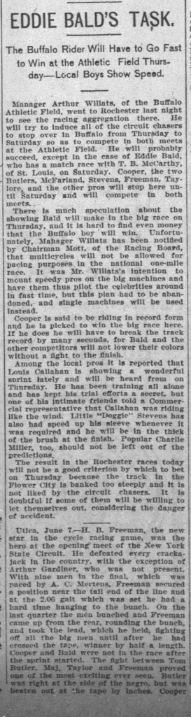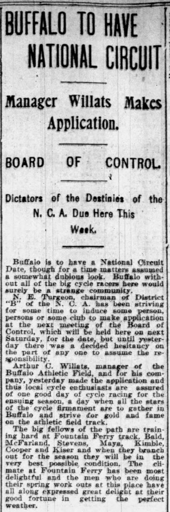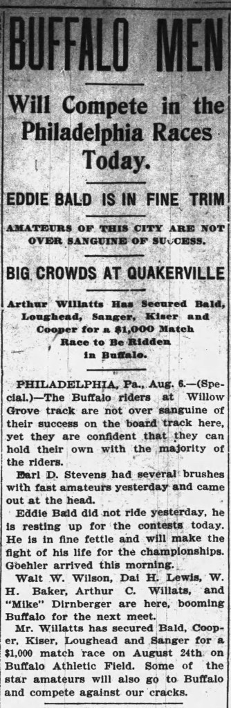 Arthur was featured in an article called “FUTURE OF BICYCLE RACES.” Which was printed in “The Buffalo Commercial” on Wednesday, 23rd September 1903.