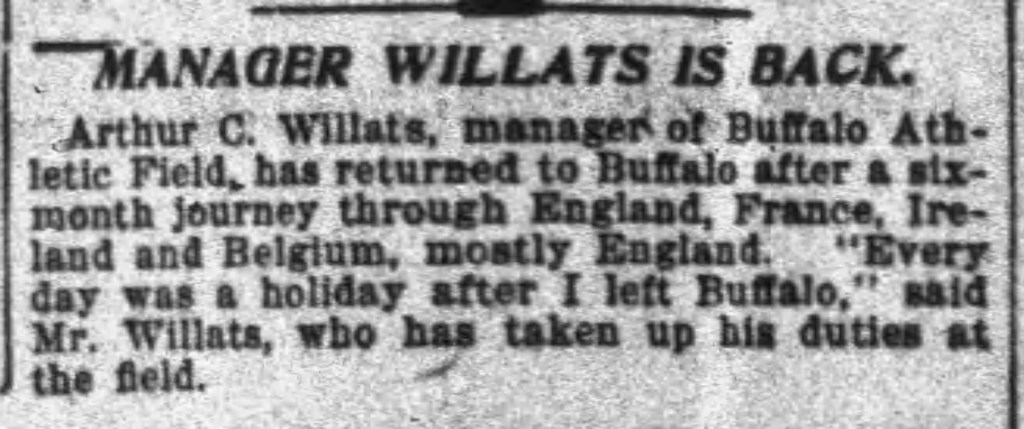 A tribute to Arthur’s wife, called “MANY FRIENDS MOURN MRS. ARTHUR WILLATS.” was printed on page 10, of The Buffalo Evening News, on Thursday, the 26th of January 1905.