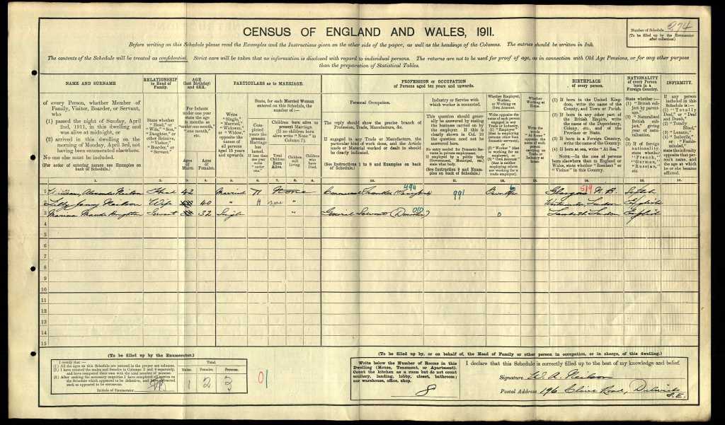 Jumping forward to the year 1911, the year of the census. Lilly and William were residing at, Number 196 Clive Road, Dulwich, Lambeth, London, England, on Sunday 2nd April 1911.